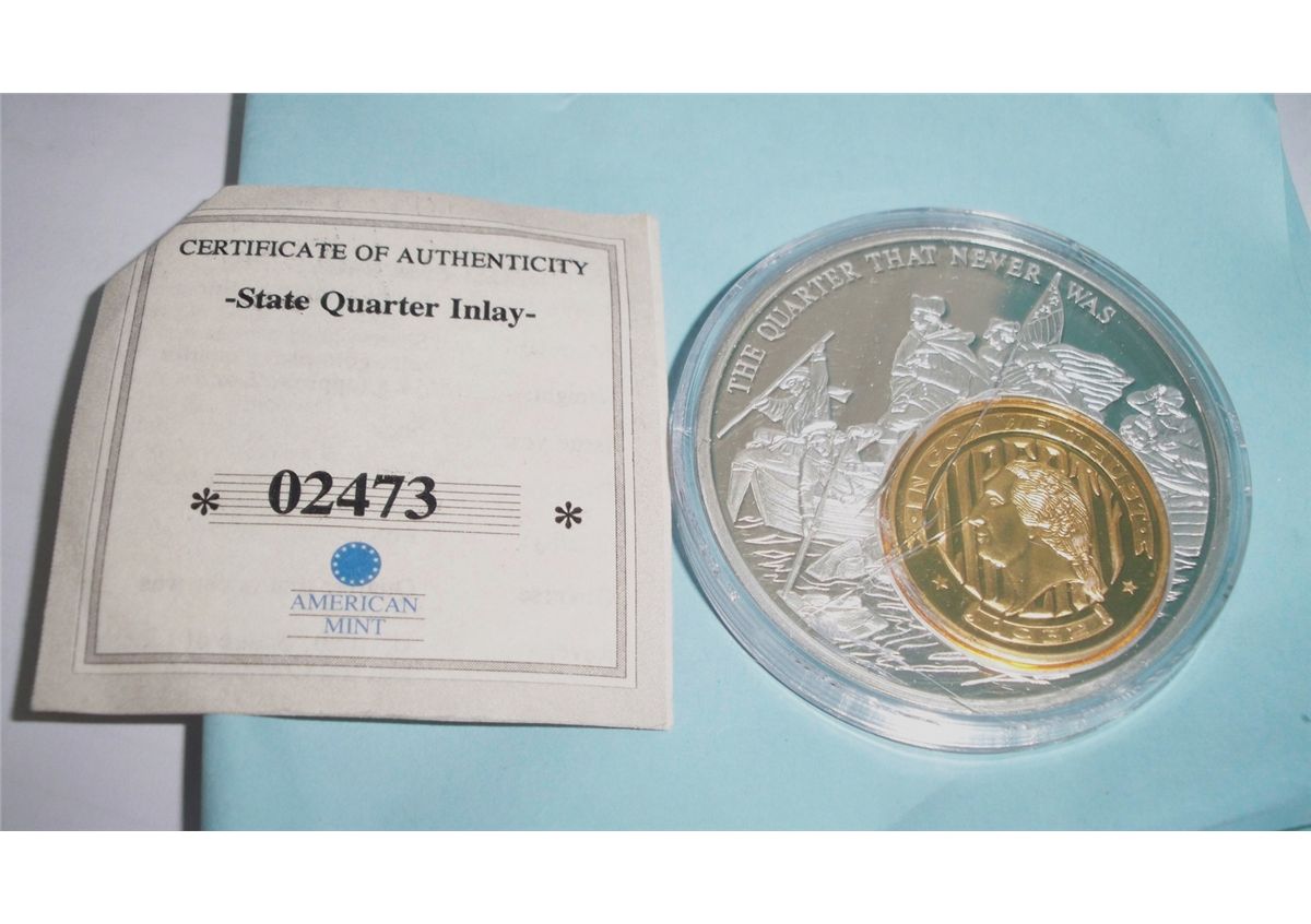 1932 GOLD STATE QUARTER THAT NEVER WAS IN SILVER LATED HOLDER, LTD EDITION