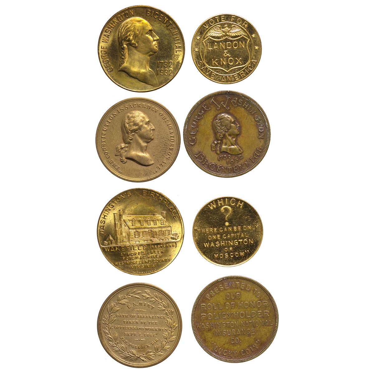 Lot of 4. George Washington Commerative, Bicentennial 1732-1932 (2), Political "LANDON & KNOX." - Weber Collection