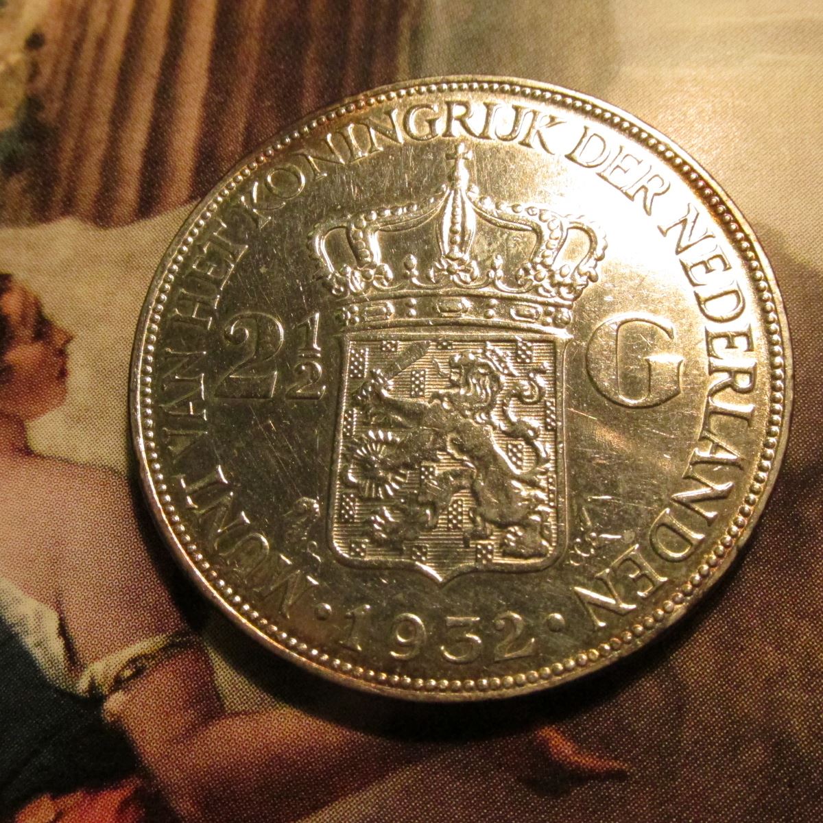 1932 Netherland 2 1/2 Gulden .720 fine Silver. KM165. EF++. KM value $30.00.