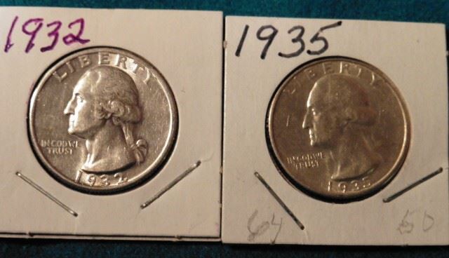 1932 P & 35 P Washington Quarters. AU-BU. Red Book value $25-50.00.