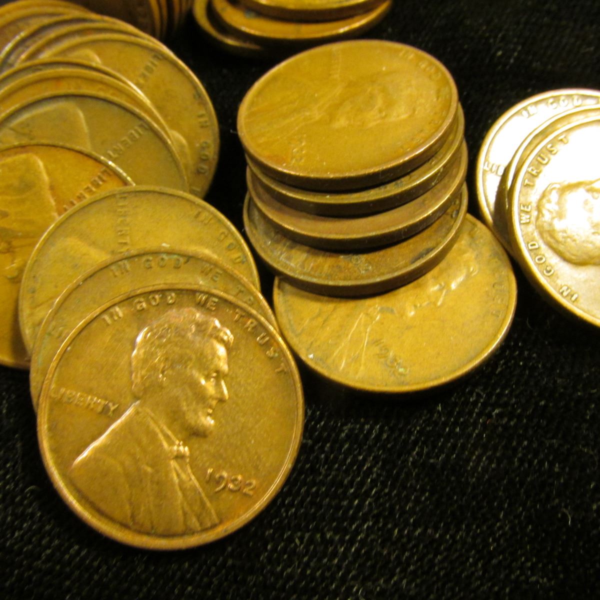 1932 P Solid-date Roll of Lincoln Cents (more than 50 pcs.) Many grade up to EF.