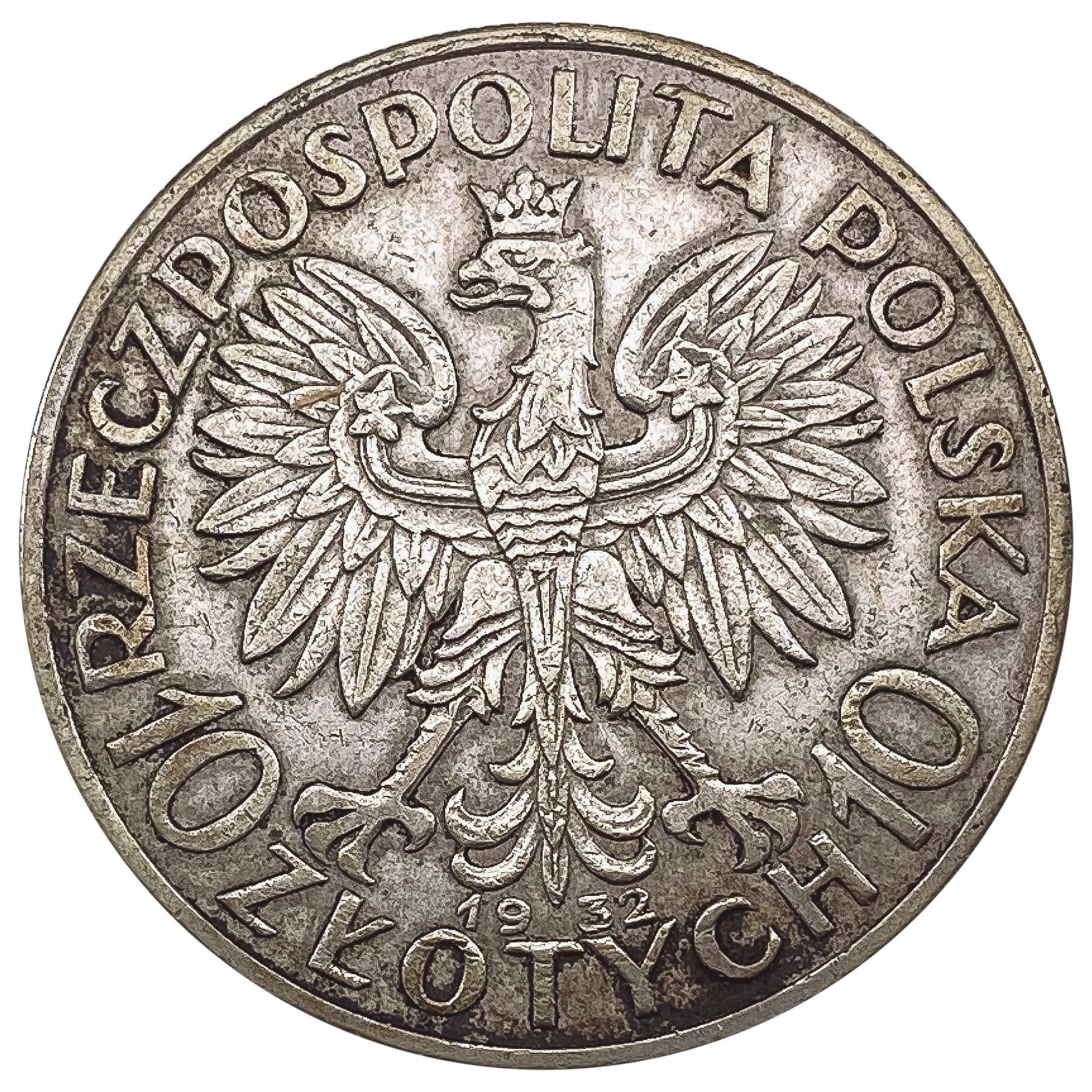 1932 Poland Silver 10 Zlotych CLOSELY UNCIRCULATED