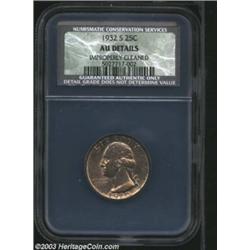 1932-S 25C AU50 Details, Improperly Cleaned, NCS.