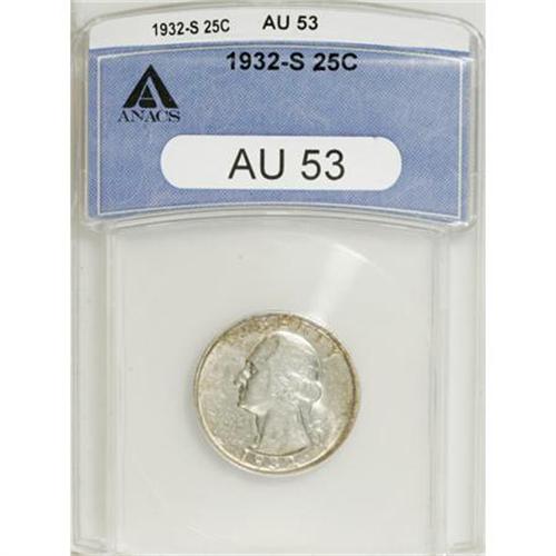 <B>1932-S 25C AU53 ANACS.</B></I> . NGC Census: (73/2041). PCGS Population (100/3021). Mintage: 408,000. Numismedia Wsl. Price for NGC/PCGS coin in AU53: $265. (#5792)<BR><BR><B>Coin Engraver:</B> John Flanagan<BR><BR><b>Shipping:</b> Coins & Currency (<a target="_blank" href="http://www.heritageauctions.com/common/shipping.php">view shipping information</a>)