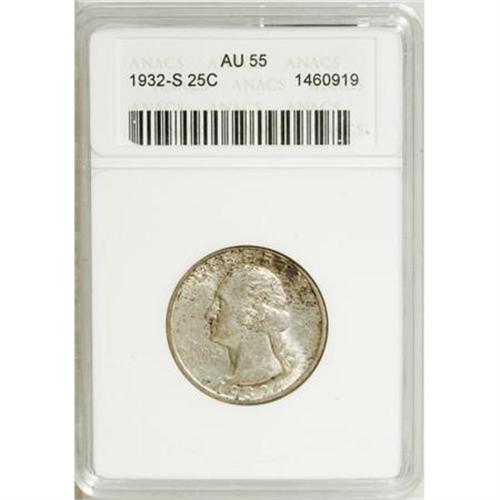 <B>1932-S 25C AU55 ANACS.</B></I> . NGC Census: (180/1861). PCGS Population (242/2779). Mintage: 408,000. Numismedia Wsl. Price for NGC/PCGS coin in AU55: $280. (#5792)<BR><BR><B>Coin Engraver:</B> John Flanagan<BR><BR><b>Shipping:</b> Coins & Currency (<a target="_blank" href="http://www.heritageauctions.com/common/shipping.php">view shipping information</a>)