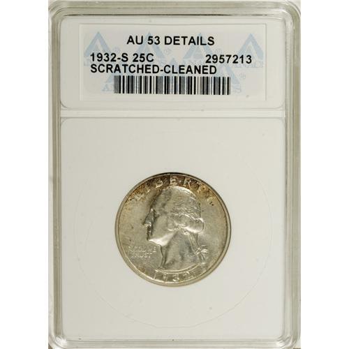 1932-S 25C --Cleaned, Scratched--ANACS. AU53 Details.