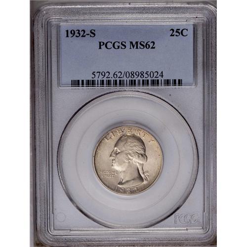 1932-S 25C MS62 PCGS. This key date example displays g 1932-S[25C] MS62 PCGS.