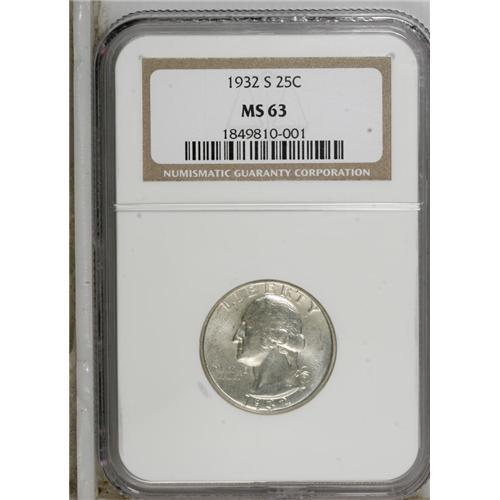 1932-S 25C MS63 NGC. This key date Washington quarter