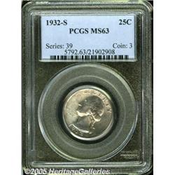 <B>1932-S 25C MS63 PCGS.</B></I> A few speckles of olive color visit lustrous surfaces, especially around the peripheries.
