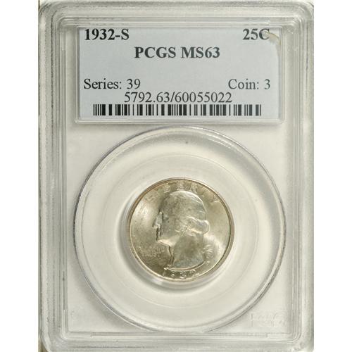 1932-S 25C MS63 PCGS. Frosty with pale blue and gold p