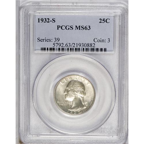 1932-S 25C MS63 PCGS. Only 408,000 pieces were minted