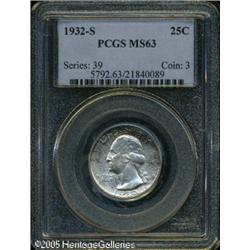 <B>1932-S 25C MS63 PCGS.</B></I> This key date example shows dappled russet and sky-blue patina over lustrous surfaces that exhibit well struck devices. A few minor marks on Washington's face limit the grade. Lot:6779