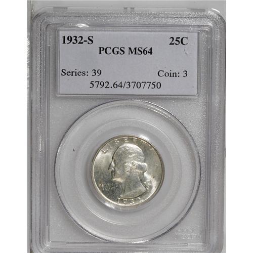 1932-S 25C MS64 PCGS. A brilliant coin, with a touch o