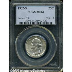 <B>1932-S 25C MS64 PCGS.</B></I> A lovely near-Gem with faint steel and pale blue color over silvery-white surfaces on the obverse. The reverse has light gold color masking the brilliant silver surfaces. Both sides are fully lustrous and quite pleasing.