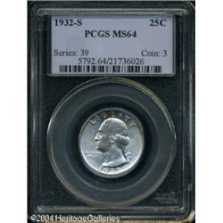 1932-S 25C MS64 PCGS. An essentially brilliant, ke 1932-S 25C MS64 PCGS.