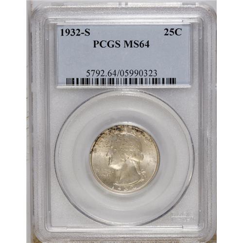 1932-S 25C MS64 PCGS. Lustrous surfaces are visited by