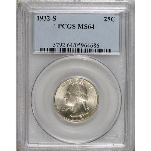 <B>1932-S 25C MS64 PCGS.</B></I> This key date quarter has vibrant luster and delicate ice-blue and apricot toning. The reverse is particularly free from marks. Well struck throughout the borders and major devices.<BR><BR><b>Shipping:</b> Coins & Currency (<a target="_blank" href="http://www.heritageauctions.com/common/shipping.php">view shipping information</a>)