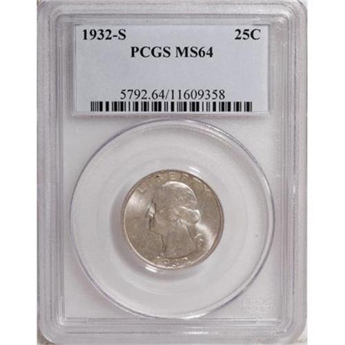 <B>1932-S 25C MS64 PCGS.</B></I> An impressive Choice Mint State piece, this '32-S quarter has frosty silver luster and sharp design motifs. Both sides are awash with pale lilac-gold toning.<BR><BR><b>Shipping:</b> Coins & Currency (<a target="_blank" href="http://www.heritageauctions.com/common/shipping.php">view shipping information</a>)