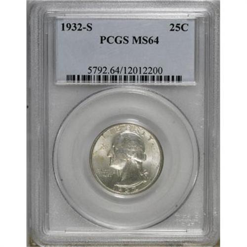 <B>1932-S 25C MS64 PCGS.</B></I> A few faint splashes of gold toning are evident on the obverse of this otherwise fully brilliant piece. It is sharply struck with a bold mintmark.<BR><BR><B>Coin Engraver:</B> John Flanagan<BR><BR><b>Shipping:</b> Coins & Currency (<a target="_blank" href="http://www.heritageauctions.com/common/shipping.php">view shipping information</a>)