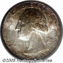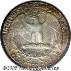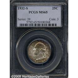 <B>1932-S 25C MS65 PCGS.</B></I> This is a frosty Gem example with gold, lilac, blue, and brown color over silvery-white surfaces. Both sides are highly lustrous and highly attractive. An important branch-mint issue from the debut of this design, originally intended to be a commemorative of the bicentennial of Washington's birth.