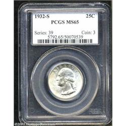 <table><tr><td><TABLE cellSpacing=0 cellPadding=0 width="100%" bgColor=#000000 border=0><TBODY> <TR><TD width="100%"><TABLE cellSpacing=1 cellPadding=3 width="100%" border=0><TBODY><TR><TD width="100%" bgColor=#79735c><FONT face=arial color=#ffffff size=3><B>Description</B> </FONT></TD></TR><TR><TD width="100%" bgColor=#ffffff><FONT face=arial size=2><B>1932-S 25C MS65 PCGS.</B></I> It has been several auctions since we have offered a Gem 1932-S quarter. This issue is not quite as scarce as the 1932-D, even though it has a lower mintage. It is still a very elusive coin in all grades and especially in the better grades of Mint State. This sharply struck example that has hard, satiny luster, and it is generally brilliant with just the faintest bit of golden patina around the margins. Population: 55 in 65, 2 finer (9/03). </FONT></TD></TR></TBODY></TABLE></TD></TR></TBODY></TABLE><BR><A name=PricesRealized></A><TABLE cellSpacing=0 cellPadding=0 width="100%" bgColor=#000000 border=0><TBODY><TR><TD width="100%"><TABLE cellSpacing=1 cellPadding=3 width="100%" border=0><TBODY><TR><TD width="100%" bgColor=#79735c><A name=PR><FONT face=arial color=#ffffff size=3><B>Previous Prices from Heritage Auctions</B> </FONT></A></TD></TR><TR><TD bgColor=#f6f6ed><TABLE cellSpacing=0 cellPadding=0 width="100%" border=1><TBODY><TR><TD align=middle width="33%"><B>Date</B></TD><TD align=middle width="33%"><B>Service</B></TD><TD align=middle width="33%"><B>Price</B></TD></TR><TR bgColor=whitesmoke><TD width="33%"><B>04/08/2003</B></TD><TD width="33%">NGC</TD><TD width="33%">$5,060.00</TD></TR><TR bgColor=whitesmoke><TD width="33%"><B>03/04/2003</B></TD><TD width="33%">NGC</TD><TD width="33%">$4,600.00</TD></TR><TR bgColor=whitesmoke><TD width="33%"><B>03/04/2003</B></TD><TD width="33%">NGC</TD><TD width="33%">$4,600.00</TD></TR><TR bgColor=whitesmoke><TD width="33%"><B>12/31/2002</B></TD><TD width="33%">NGC</TD><TD width="33%">$5,060.00</TD></TR><TR bgColor=whitesmoke><TD width="33%"><B>03/23/2003</B></TD><TD width="33%">PCGS</TD><TD width="33%">$4,830.00</TD></TR><TR bgColor=whitesmoke><TD width="33%"><B>03/23/2003</B></TD><TD width="33%">PCGS</TD><TD width="33%">$4,830.00</TD></TR><TR bgColor=whitesmoke><TD width="33%"><B>03/01/2003</B></TD><TD width="33%">NGC</TD><TD width="33%">$3,910.00</TD></TR><TR bgColor=whitesmoke><TD width="33%"><B>01/11/2003</B></TD><TD width="33%">PCGS</TD><TD width="33%">$7,475.00</TD></TR><TR bgColor=whitesmoke><TD width="33%"><B>01/11/2003</B></TD><TD width="33%">PCGS</TD><TD width="33%">$7,475.00</TD></TR><TR bgColor=whitesmoke><TD width="33%"><B>09/28/2002</B></TD><TD width="33%">PCGS</TD><TD width="33%">$6,612.50</TD></TR><TR bgColor=whitesmoke><TD width="33%"><B>09/28/2002</B></TD><TD width="33%">PCGS</TD><TD width="33%">$6,037.50</TD></TR><TR bgColor=whitesmoke><TD width="33%"><B>09/28/2002</B></TD><TD width="33%">PCGS</TD><TD width="33%">$6,037.50</TD></TR><TR bgColor=whitesmoke><TD width="33%"><B>09/28/2002</B></TD><TD width="33%">NGC</TD><TD width="33%">$5,290.00</TD></TR><TR bgColor=whitesmoke><TD width="33%"><B>07/30/2002</B></TD><TD width="33%">PCGS</TD><TD width="33%">$6,612.50</TD></TR><TR bgColor=whitesmoke><TD width="33%"><B>07/30/2002</B></TD><TD width="33%">PCGS</TD><TD width="33%">$6,612.50</TD></TR><TR bgColor=whitesmoke><TD width="33%"><B>06/08/2002</B></TD><TD width="33%">NGC</TD><TD width="33%">$4,830.00</TD></TR><TR bgColor=whitesmoke><TD width="33%"><B>02/23/2002</B></TD><TD width="33%">PCGS</TD><TD width="33%">$7,187.50</TD></TR><TR bgColor=whitesmoke><TD width="33%"><B>02/23/2002</B></TD><TD width="33%">PCGS</TD><TD width="33%">$7,187.50</TD></TR><TR bgColor=whitesmoke><TD width="33%"><B>01/12/2002</B></TD><TD width="33%">PCGS</TD><TD width="33%">$4,611.50</TD></TR><TR bgColor=whitesmoke><TD width="33%"><B>05/31/2001</B></TD><TD width="33%">PCGS</TD><TD width="33%">$6,037.50</TD></TR><TR bgColor=whitesmoke><TD width="33%"><B>05/31/2001</B></TD><TD width="33%">PCGS</TD><TD width="33%">$6,037.50</TD></TR><TR bgColor=whitesmoke><TD width="33%"><B>01/05/2001</B></TD><TD width="33%">PCGS</TD><TD width="33%">$5,060.00</TD></TR><TR bgColor=whitesmoke><TD width="33%"><B>08/07/2000</B></TD><TD width="33%">PCGS</TD><TD width="33%">$3,910.00</TD></TR><TR bgColor=whitesmoke><TD width="33%"><B>08/07/2000</B></TD><TD width="33%">PCGS</TD><TD width="33%">$3,910.00</TD></TR><TR bgColor=whitesmoke><TD width="33%"><B>01/07/2000</B></TD><TD width="33%">PCGS</TD><TD width="33%">$2,702.50</TD></TR><TR bgColor=whitesmoke><TD width="33%"><B>01/07/2000</B></TD><TD width="33%">PCGS</TD><TD width="33%">$3,220.00</TD></TR><TR bgColor=whitesmoke><TD width="33%"><B>01/07/2000</B></TD><TD width="33%">PCGS</TD><TD width="33%">$3,220.00</TD></TR><TR bgColor=whitesmoke><TD width="33%"><B>08/08/1998</B></TD><TD width="33%">NGC</TD><TD width="33%">$1,375.00</TD></TR><TR bgColor=whitesmoke><TD width="33%"><B>06/06/1998</B></TD><TD width="33%">NGC</TD><TD width="33%">$3,450.00</TD></TR><TR bgColor=whitesmoke><TD width="33%"><B>06/06/1998</B></TD><TD width="33%">NGC</TD><TD width="33%">$3,450.00</TD></TR><TR bgColor=whitesmoke><TD width="33%"><B>01/11/1997</B></TD><TD width="33%">PCGS</TD><TD width="33%">$1,840.00</TD></TR><TR bgColor=whitesmoke><TD width="33%"><B>01/11/1997</B></TD><TD width="33%">NGC</TD><TD width="33%">$2,242.50</TD></TR><TR bgColor=whitesmoke><TD width="33%"><B>01/11/1997</B></TD><TD width="33%">NGC</TD><TD width="33%">$2,242.50</TD></TR><TR bgColor=whitesmoke><TD width="33%"><B>09/21/1996</B></TD><TD width="33%">NGC</TD><TD width="33%">$1,155.00</TD></TR><TR bgColor=whitesmoke><TD width="33%"><B>05/29/1996</B></TD><TD width="33%">NGC</TD><TD width="33%">$1,045.00</TD></TR><TR bgColor=whitesmoke><TD width="33%"><B>05/29/1996</B></TD><TD width="33%">NGC</TD><TD width="33%">$1,045.00</TD></TR><TR bgColor=whitesmoke><TD width="33%"><B>02/06/1995</B></TD><TD width="33%">NGC</TD><TD width="33%">$1,265.00</TD></TR><TR bgColor=whitesmoke><TD width="33%"><B>07/31/1993</B></TD><TD