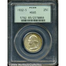 <B>1932-S<25C> MS65 PCGS.</B></I> Sharply defined with smooth mint luster, each side is covered with rich golden-olive toning that is unquestionably original. Only 408,000 pieces were struck of this issue, the lowest in the series. <BR><BR><B>Important notice:</B> Heritage usually auctions material at the rate of 200-250 lots per hour. On some occasions eBay Live bid software or the Internet may not be able to keep up with the pace of the auction. We recommend placing a realistic absentee bid now as insurance to avoid disappointment. Occasionally the auctioneer may eliminate or reject an eBay Live bid, and the auctioneer may also reopen a lot after the close of the eBay live bidding (usually because we missed an audience bid), and may reject your bid even if it shows you as the winning bidder. By bidding via eBay Live, you agree that Heritage may award the lot to another bidder at its sole discretion under the circumstances described above or any other reasonable circumstances. Since eBay bids are not shown to us until we open the lot on the floor, we treat those bids just like floor bids. In most cases the floor responds before the eBay bid is presented to us, due to Internet lag time, so for consistency we have made it a policy that floor bids are always considered first over tie eBay live bids. Also please note that all Heritage lots purchased through eBay Live carry a 20% Buyer's Premium. Please make sure you read the Terms and Conditions before you bid. </span></font></tr></table></td></tr></table>