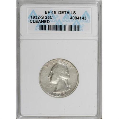 <B>1932-S 25C --Cleaned--ANACS. XF45 Details.</B></I> NGC Census: (86/2096). PCGS Population (116/3050). Mintage: 408,000. Numismedia Wsl. Price for NGC/PCGS coin in XF45: $211. (#5792)<BR><BR><B>Coin Engraver:</B> John Flanagan<BR><BR><b>Shipping:</b> Coins & Currency (<a target="_blank" href="http://www.heritageauctions.com/common/shipping.php">view shipping information</a>)
