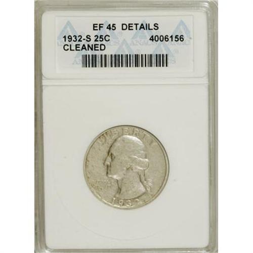 <B>1932-S 25C --Cleaned--ANACS. XF45 Details.</B></I> NGC Census: (86/2096). PCGS Population (116/3050). Mintage: 408,000. Numismedia Wsl. Price for NGC/PCGS coin in XF45: $211. (#5792)<BR><BR><B>Coin Engraver:</B> John Flanagan<BR><BR><b>Shipping:</b> Coins & Currency (<a target="_blank" href="http://www.heritageauctions.com/common/shipping.php">view shipping information</a>)