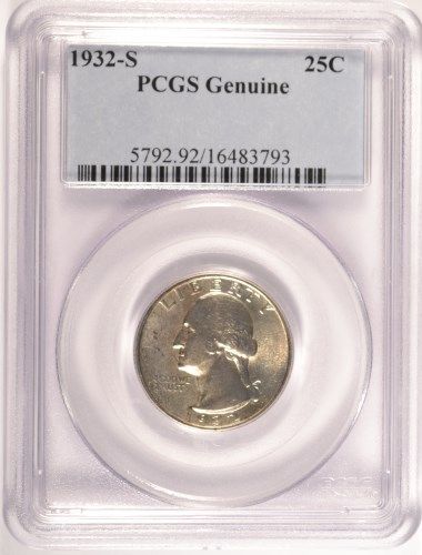 1932-S WASHINGTON QUARTER PCGS GENUINE, SAYS CLEANED, DOES NOT LOOK IT!