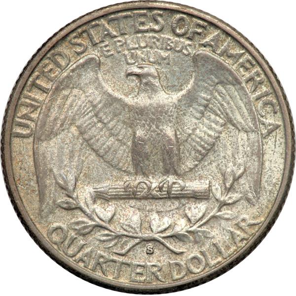 1932-S Washington Quarter Dollar. PCGS graded AU-55. Nicely toned, with chioce underlying surfaces. Scarce, low mintage year (PCGS # 5792) .