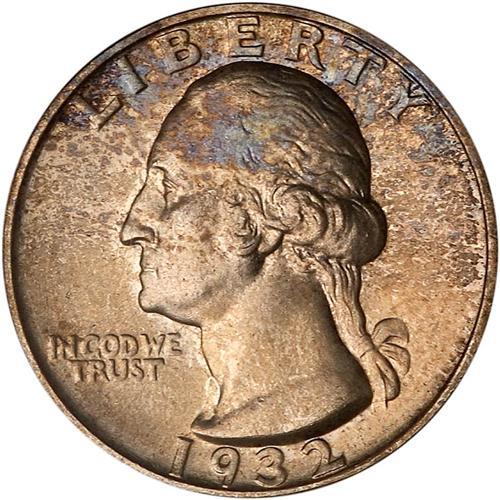 Second in rarity to the 1932-D in the eyes of many, yet the 1932-S has a lower mintage (408,000 pieces). As often happens, chance gave the nod to 1932-S in the number of choice mint quality pieces saved at the time of issue. Natural original toning.