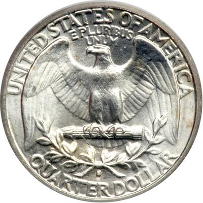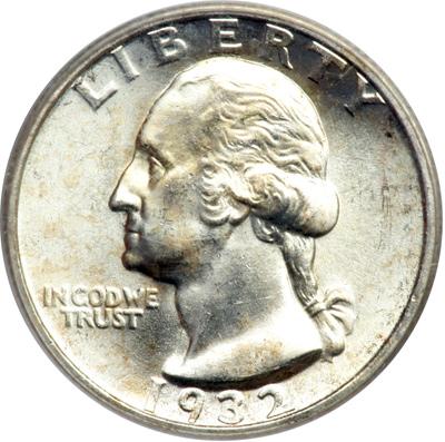1932-S Washington Quarter Dollar. PCGS graded MS-64. 408,000 pieces struck of which only 40,000 examples are estimated to have survived. A touch of golden tones are scattered here and there. The white luster that swirls virtually untouched by marks on the face and neck of Washington opens abruptly into a wide open field of similar satin beauty on both sides (PCGS # 5792) .