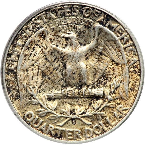 1932-S Washington Quarter Dollar. PCGS graded AU-55. Original antique toning on both sides (PCGS # 5792) .