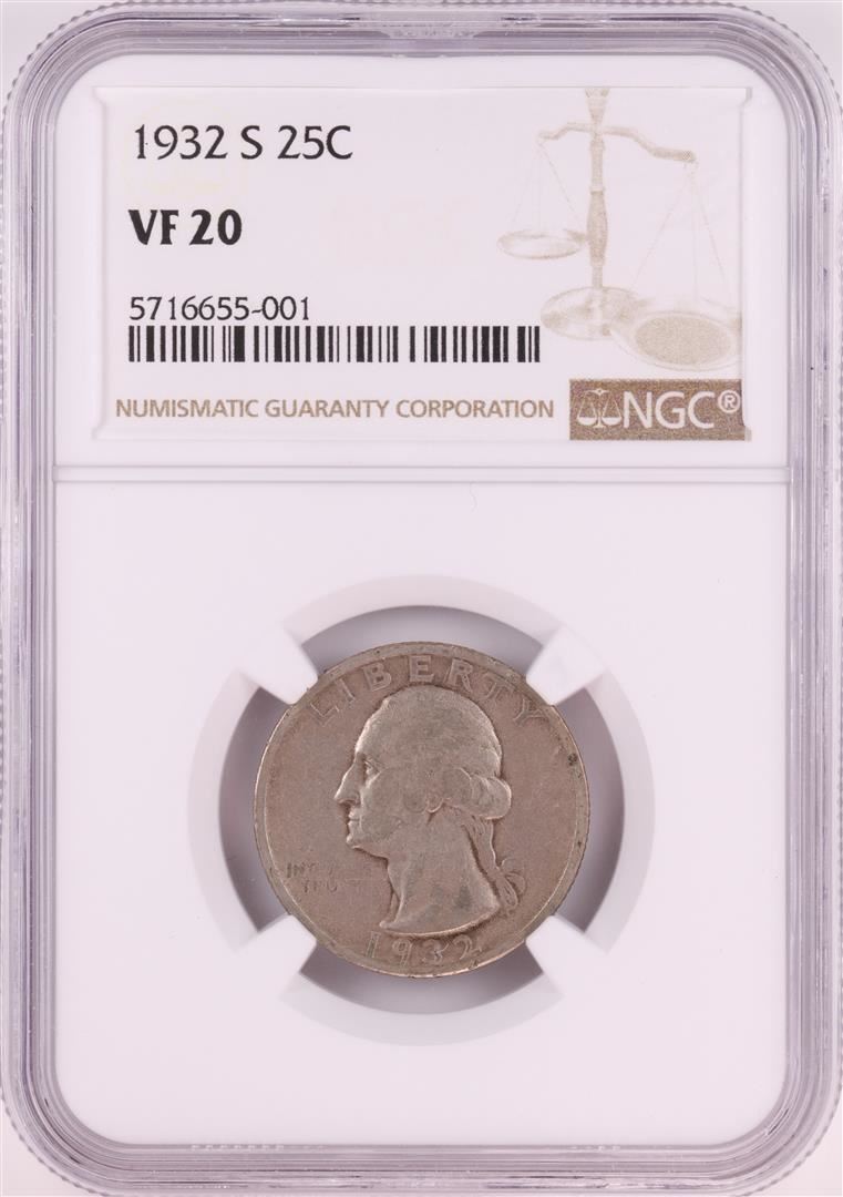 One 1932-S Washington Quarter Coin NGC VF20. NGC Certified.
