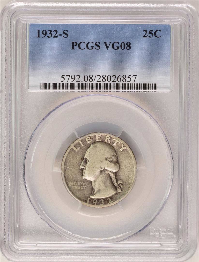 One 1932-S Washington Quarter Coin PCGS VG08. PCGS Graded.