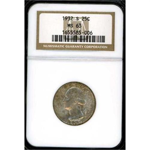 <b>1932-S Washington Quarter Dollar. NGC graded MS63.</b> Again, a first-rate coin in its grade featuring lovely russet brown and gray patina on both sides; this one all original and uncleaned <b>(PCGS # 5792)</b>