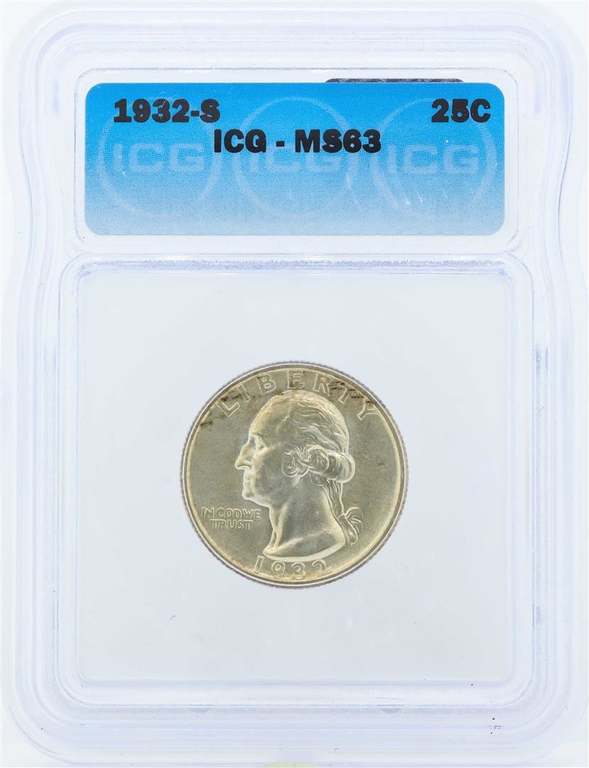 One 1932-S Washington Silver Quarter Coin ICG MS63. ICG Certified.