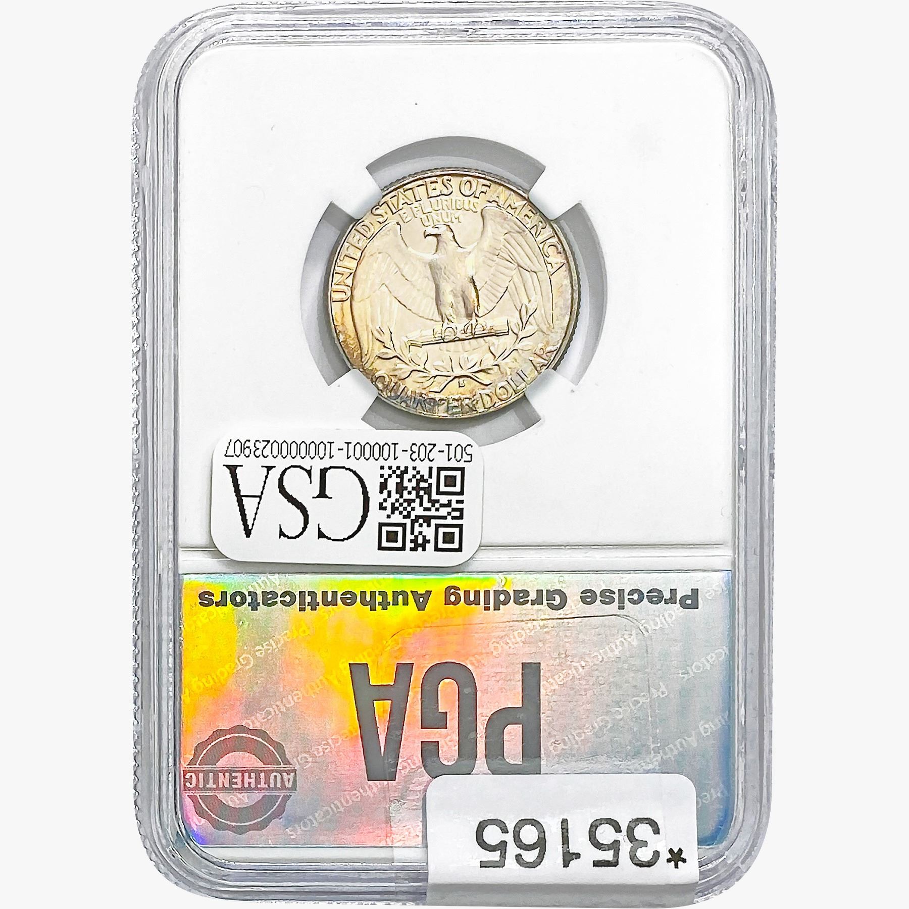 COINS AND CURRENCY LISTED IN GSA’S CATALOG AS GRADED AND ENCAPSULATED BY PCGS, NGC, ANACS, ICG, PCGS CURRENCY, PMG, PCGS BANKNOTE GRADING, CMC OR ANY OTHER THIRD-PARTY GRADING SERVICE ARE LIKEWISE SOLD “AS-IS” EXCEPT AS EXPRESSLY SET FORTH HEREIN. ALL THIRD-PARTY GRADING SERVICE GUARANTEES, INCLUDING AUTHENTICITY, ARE THE SOLE RESPONSIBILITY OF THE THIRD-PARTY GRADING SERVICE AND NOT WARRANTIES OR GUARANTEES OF GSA. BIDDERS SHOULD CONTACT THESE THIRD-PARTY GRADING SERVICES DIRECTLY WITH RESPECT TO ANY CLAIMS OR QUESTIONS THEY MAY HAVE CONCERNING THEIR GUARANTEES AND WARRANTIES. BIDDERS ACKNOWLEDGE AND AGREE THAT AUCTIONEER IS NOT BOUND BY OR LIABLE FOR ANY OPINION OR CERTIFICATION BY ANY THIRD-PARTY GRADING SERVICE. REMOVAL OF A PRODUCT FROM ITS PROTECTIVE CASING OR HOLDER OR ALTERATION OF ANY COIN HOLDER WAIVES ALL RIGHTS CONCERNING THE PRODUCT CONTAINED THEREIN.