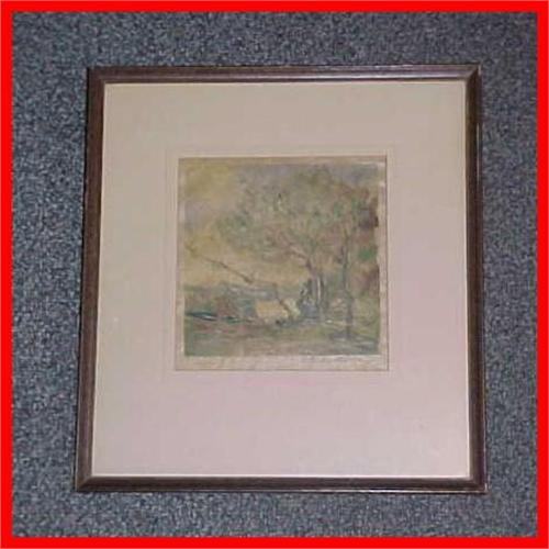 </font></strong>This 1932 pencil signed print is titled "Trees". I can not read the signature(SEE PHOTO)on this Arts & Crafts style original print. Framed/matted size is 13-3/4" tall and 12-3/4"; print size is 6-1/4" square. Good condition with slight discoloring on matte. I have not taken this item out of the original frame and glass.</font>
