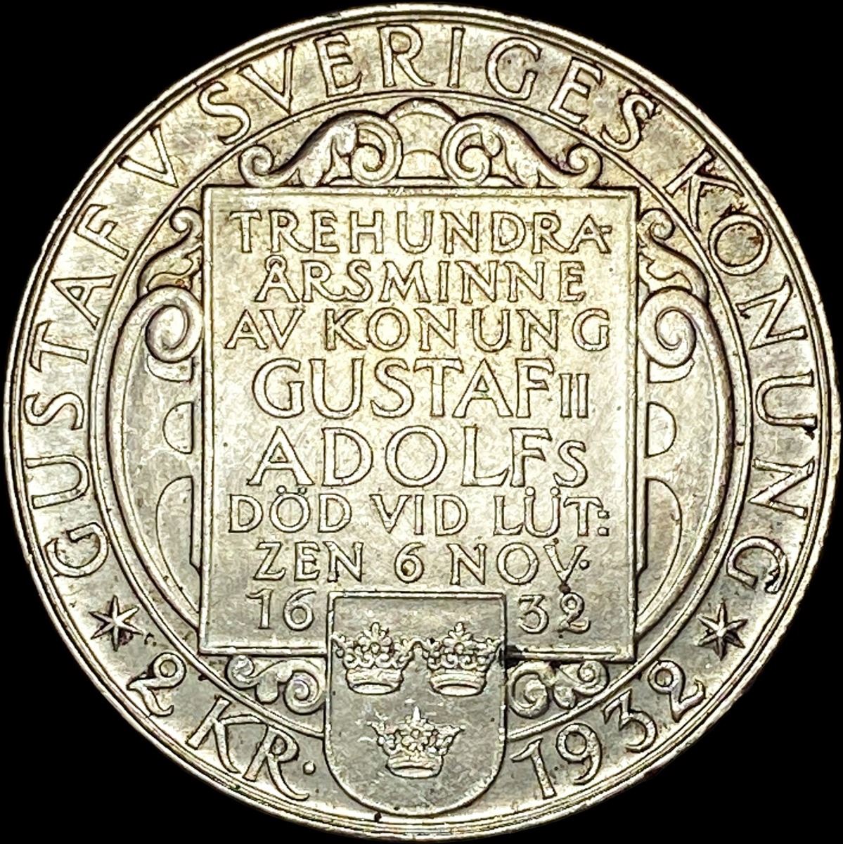 1932 Sweden Gustaf II Adolf Silver 2 Kronor UNCIRCULATED