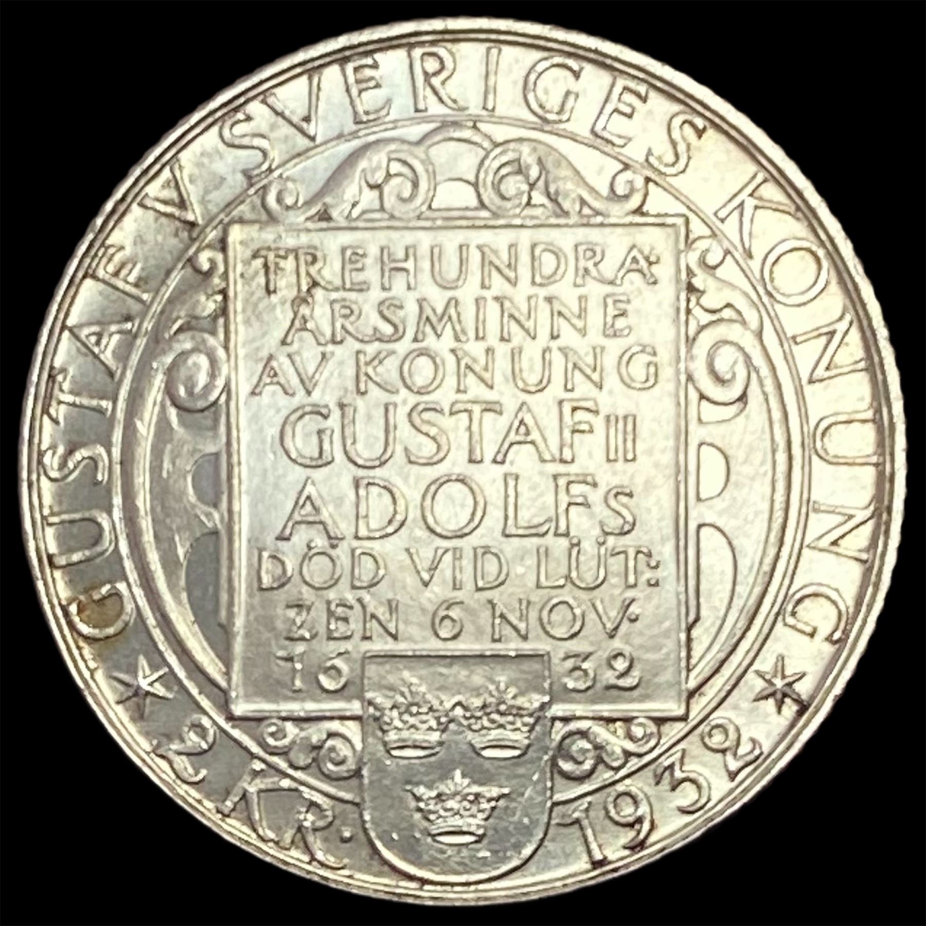1932 Sweden Gustaf II Adolf Silver 2 Kronor UNCIRCULATED