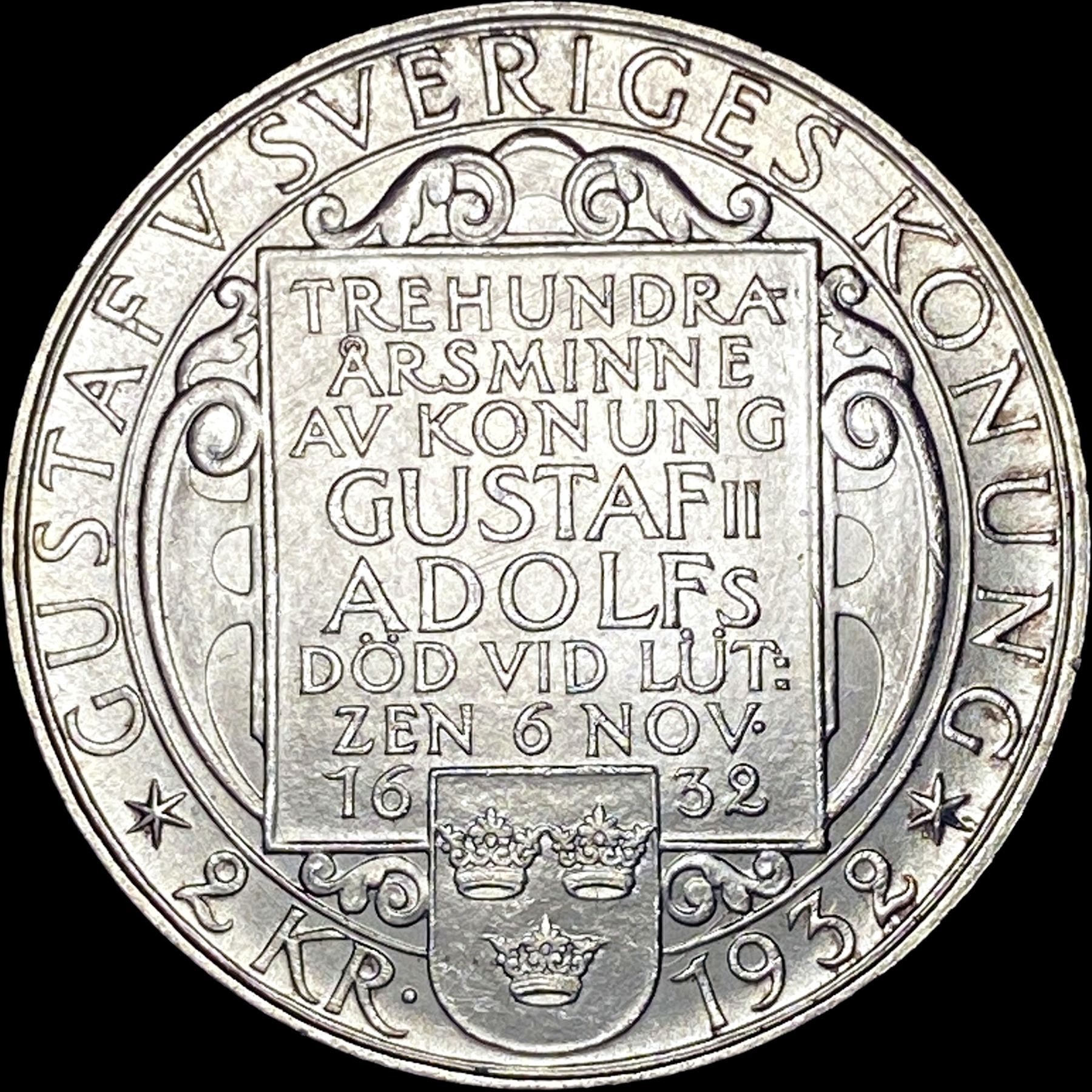 1932 Sweden Gustaf II Silver 2 Kronor UNCIRCULATED