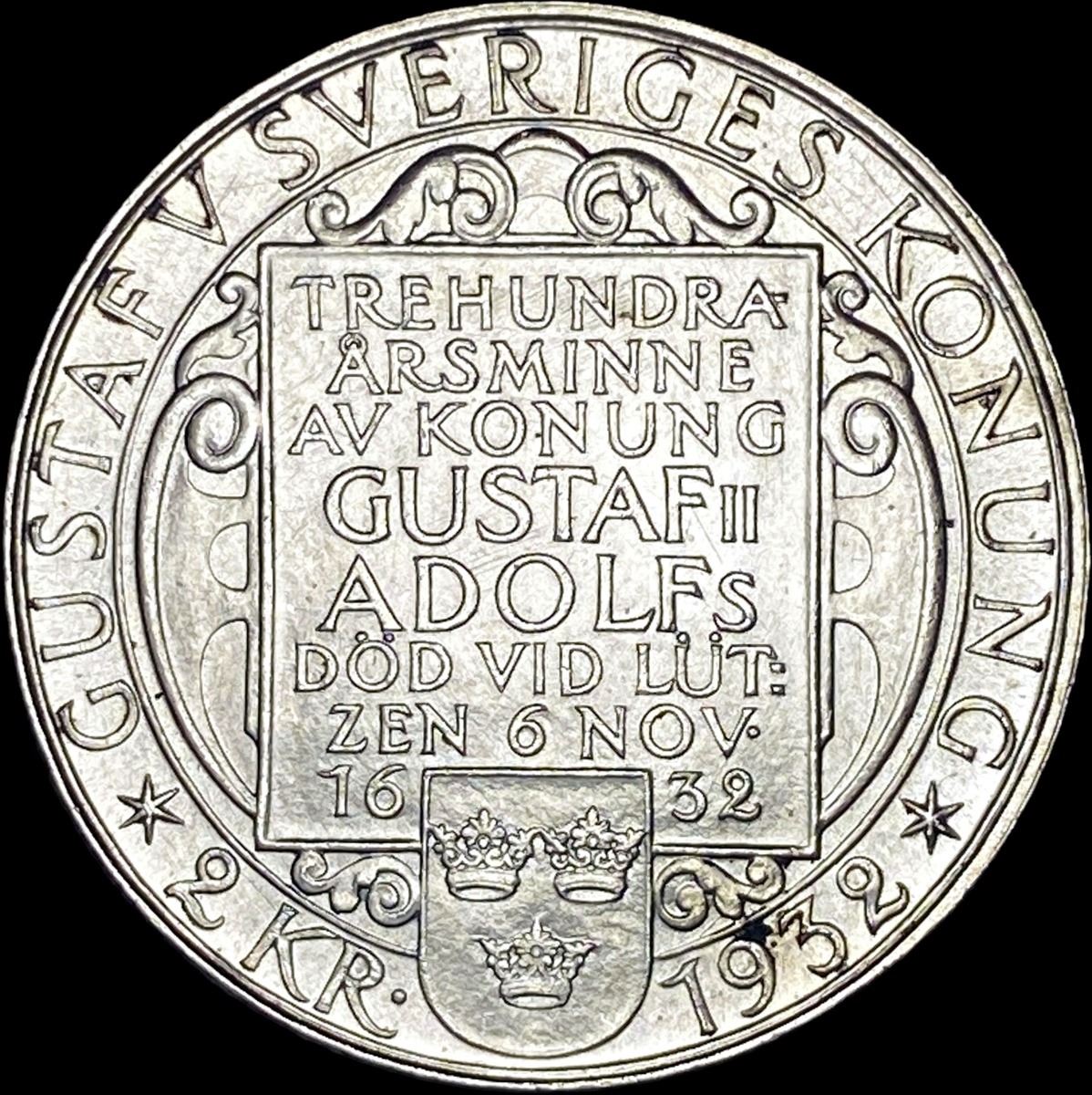 1932 Sweden Gustaf II Silver 2 Kronor UNCIRCULATED