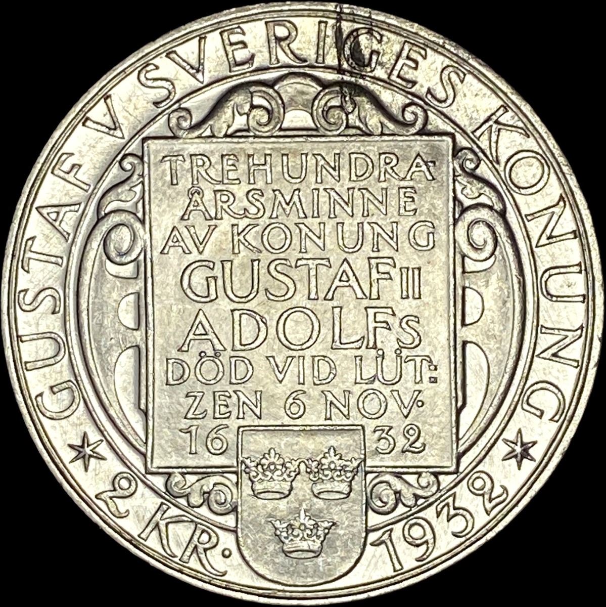 1932 Sweden Gustaf II Silver 2 Kronor UNCIRCULATED