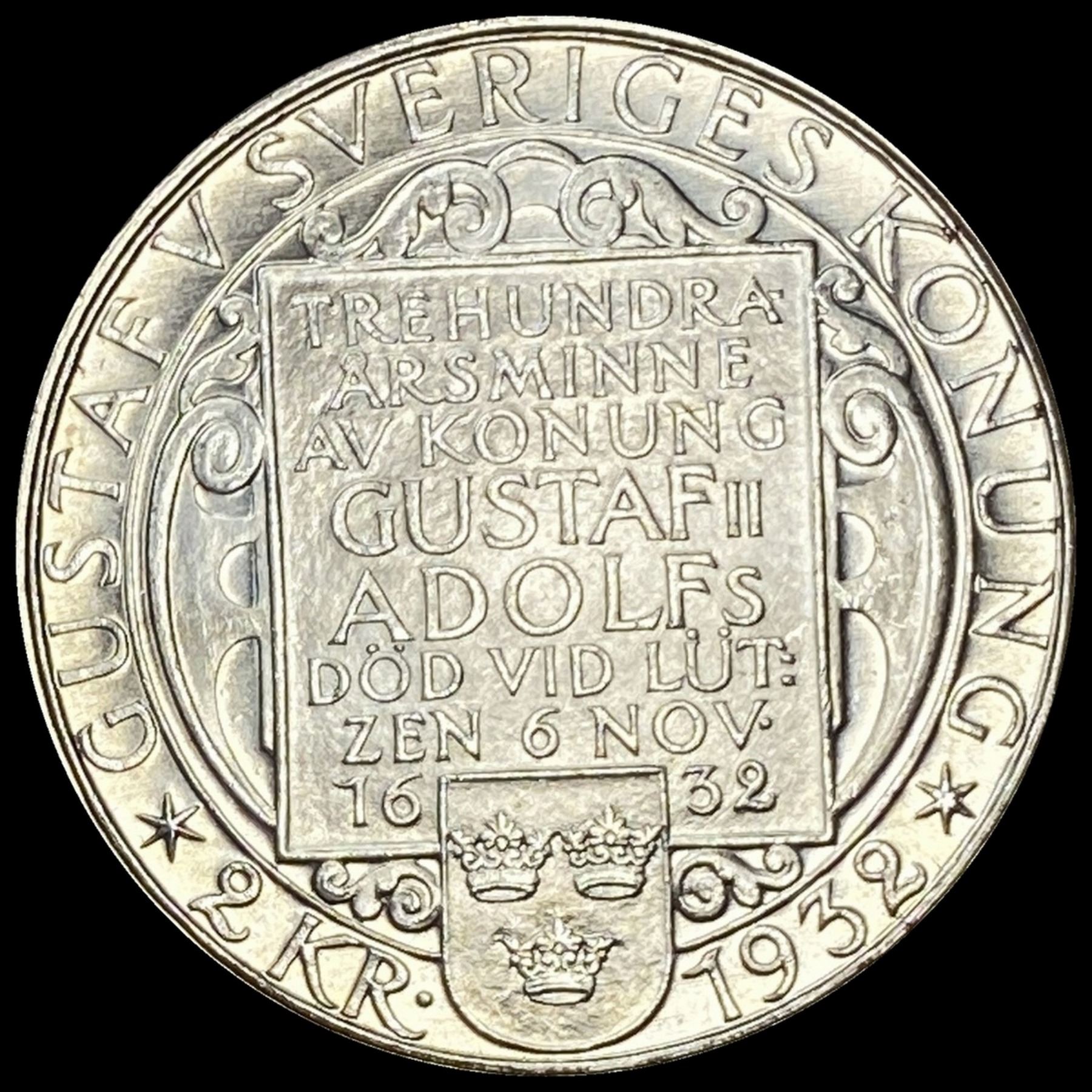1932 Sweden Silver 2 Kroner-Gustaf II Adolf UNCIRCULATED