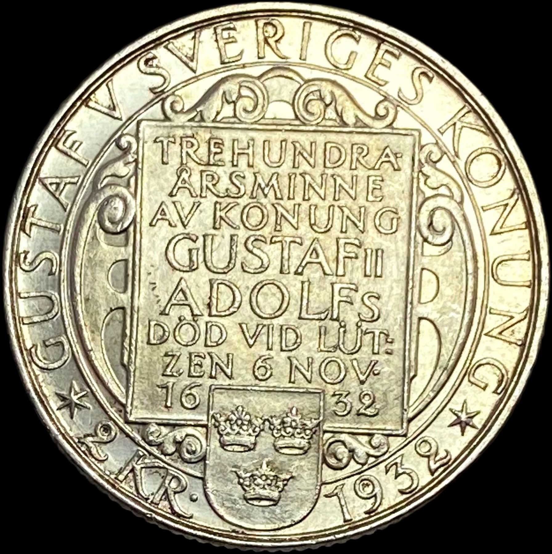 1932 Sweden Silver 2 Kroner Gustaf II Adolf UNCIRCULATED