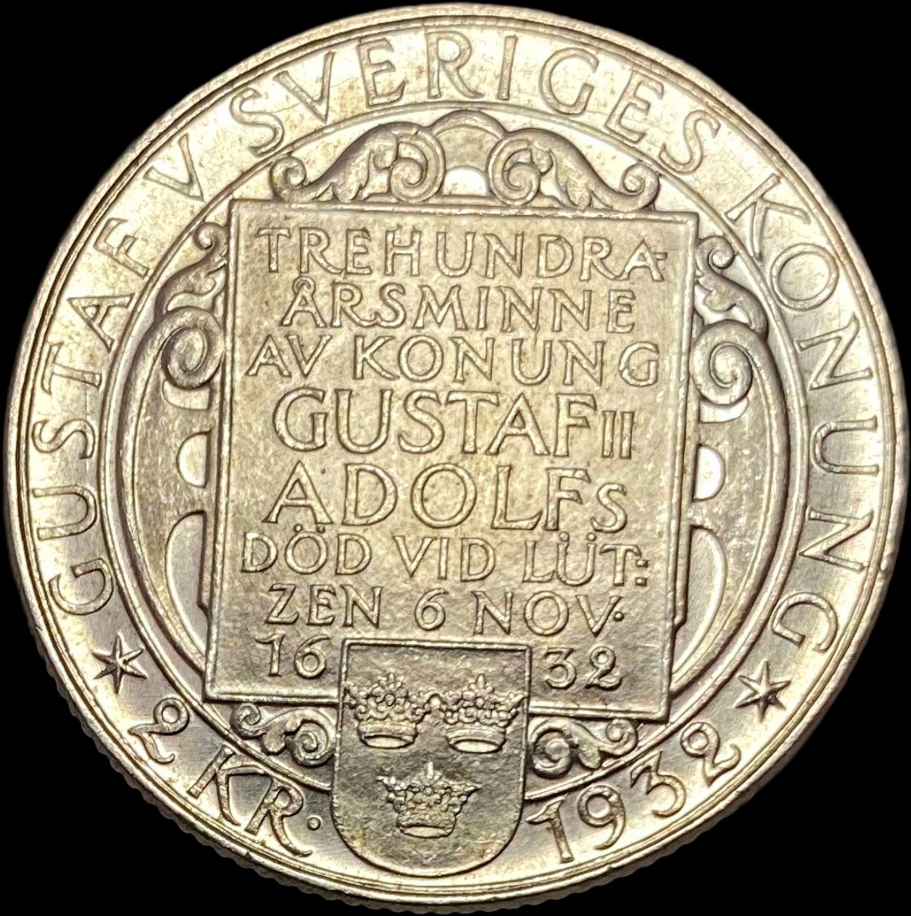 1932 Sweden Silver 2 Kroner Gustaf II Adolf UNCIRCULATED