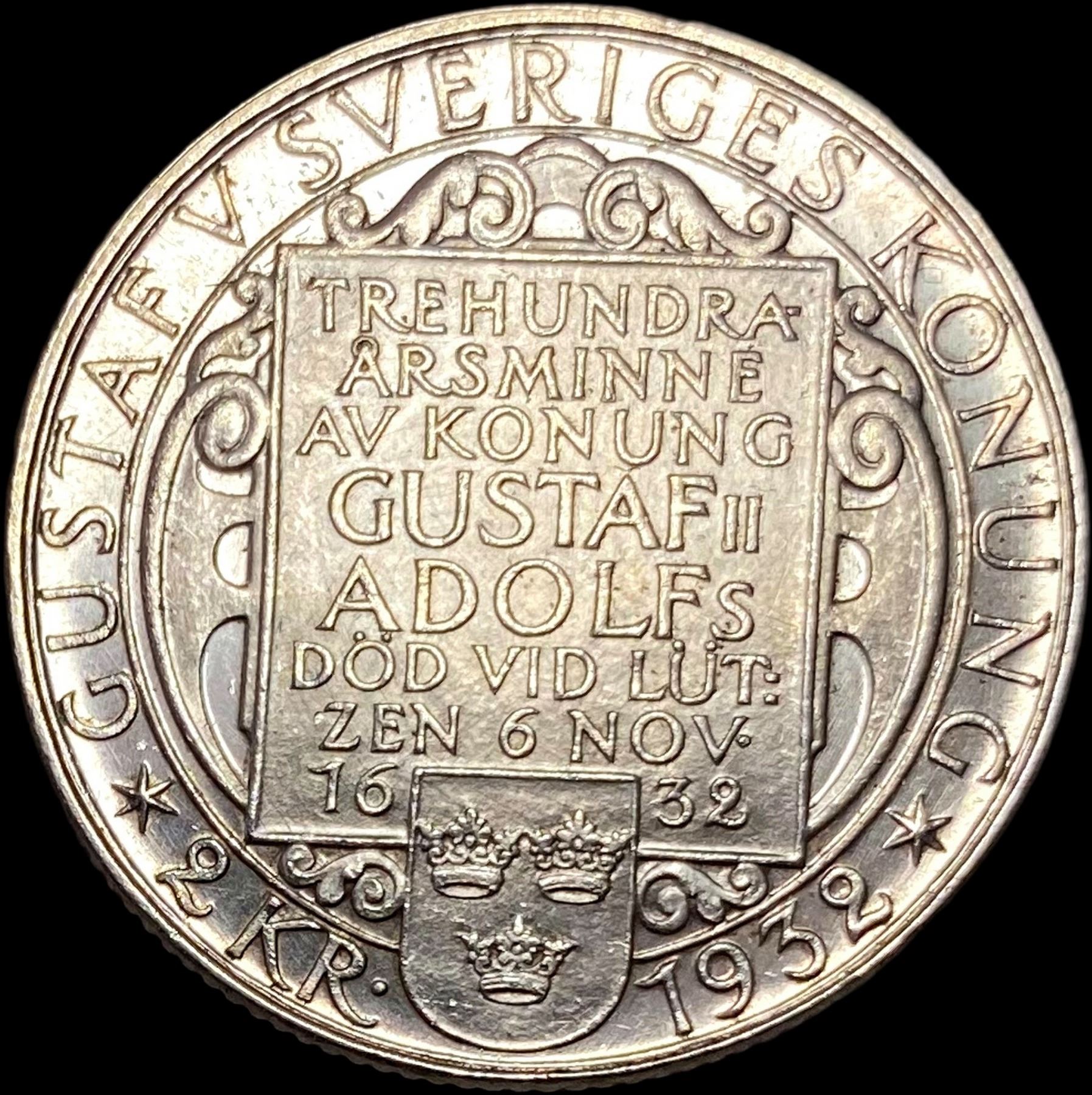 1932 Sweden Silver 2 Kroner Gustaf II Adolf UNCIRCULATED