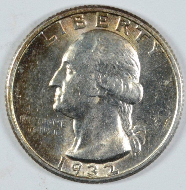 1932 WASHINGTON QUARTER, MS-64 WITH SOME RAINBOW TONING, NICE!!