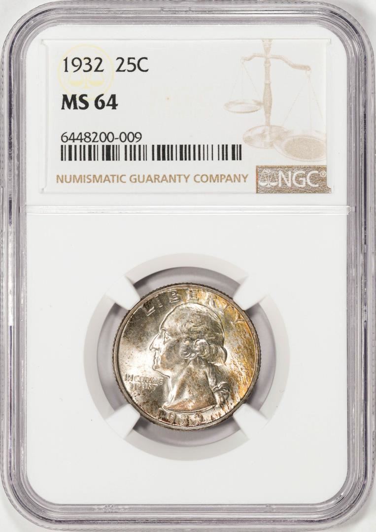 One 1932 Washington Quarter Coin NGC MS64. NGC Certified.